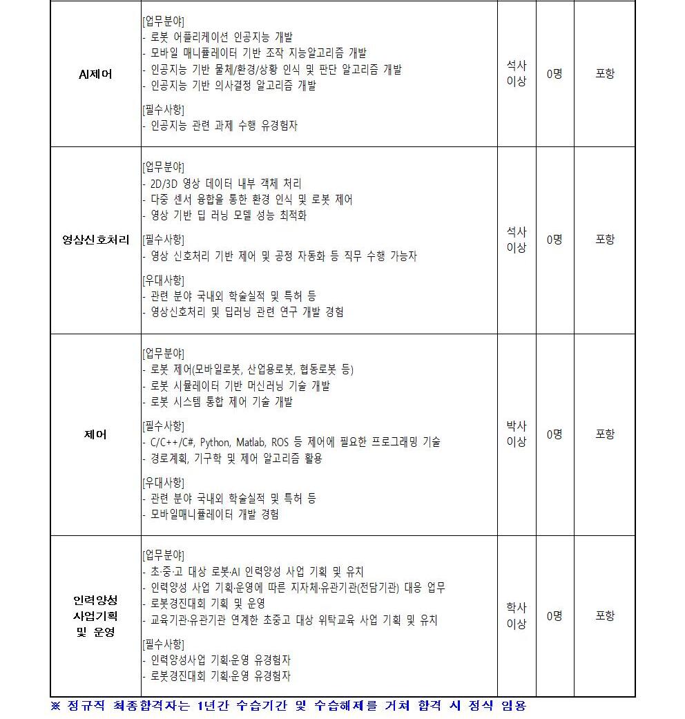 [한국로봇융합연구원] '25년 1차 정기채용 공고