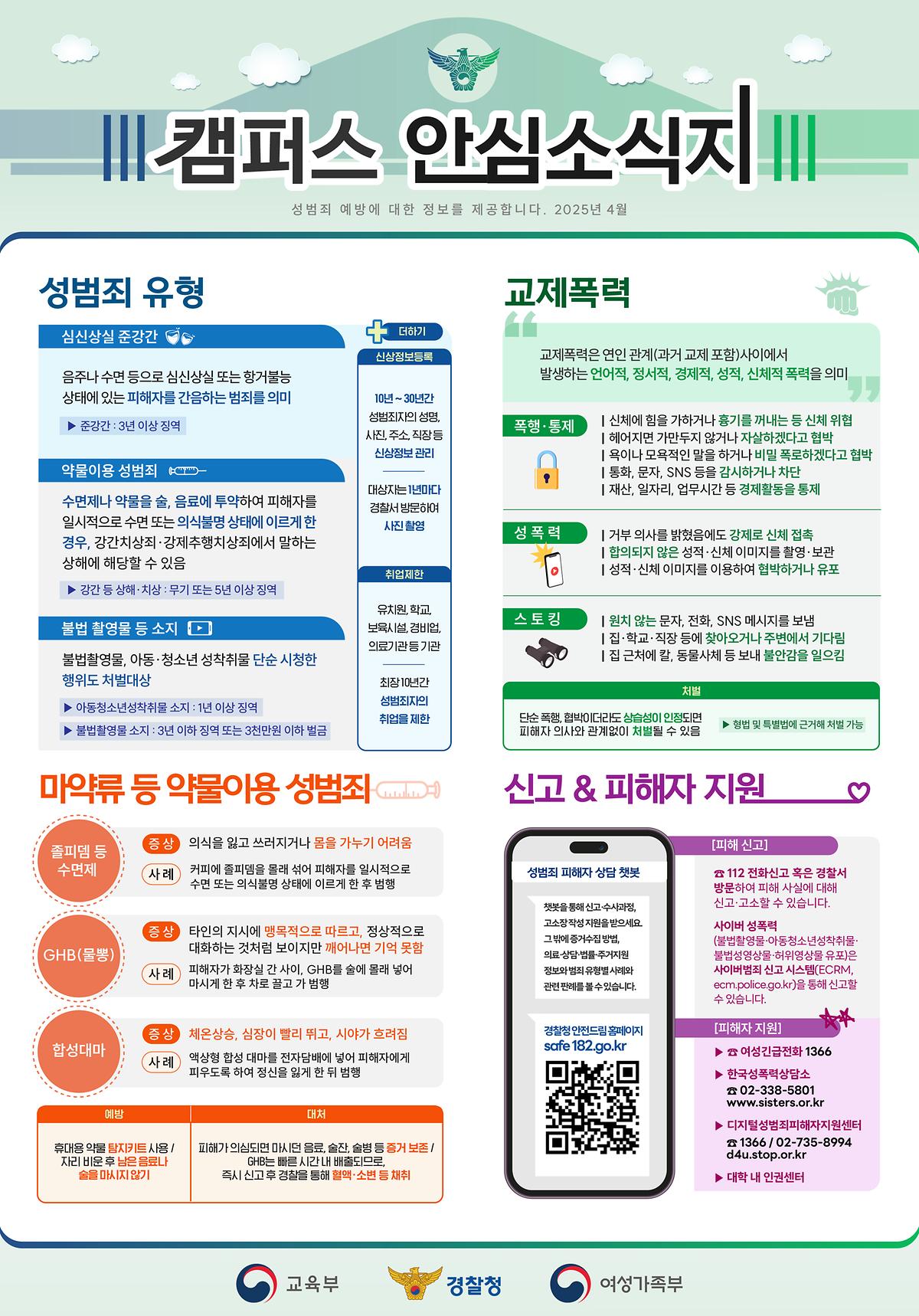 대학 내 성범죄 예방을 위한 '캠퍼스 안심 소식지'(2025. 4.)를 공유합니다.