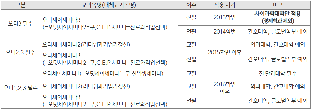 ③ 편입생은 2014학번부터 오디세이세미나3 이수 필수