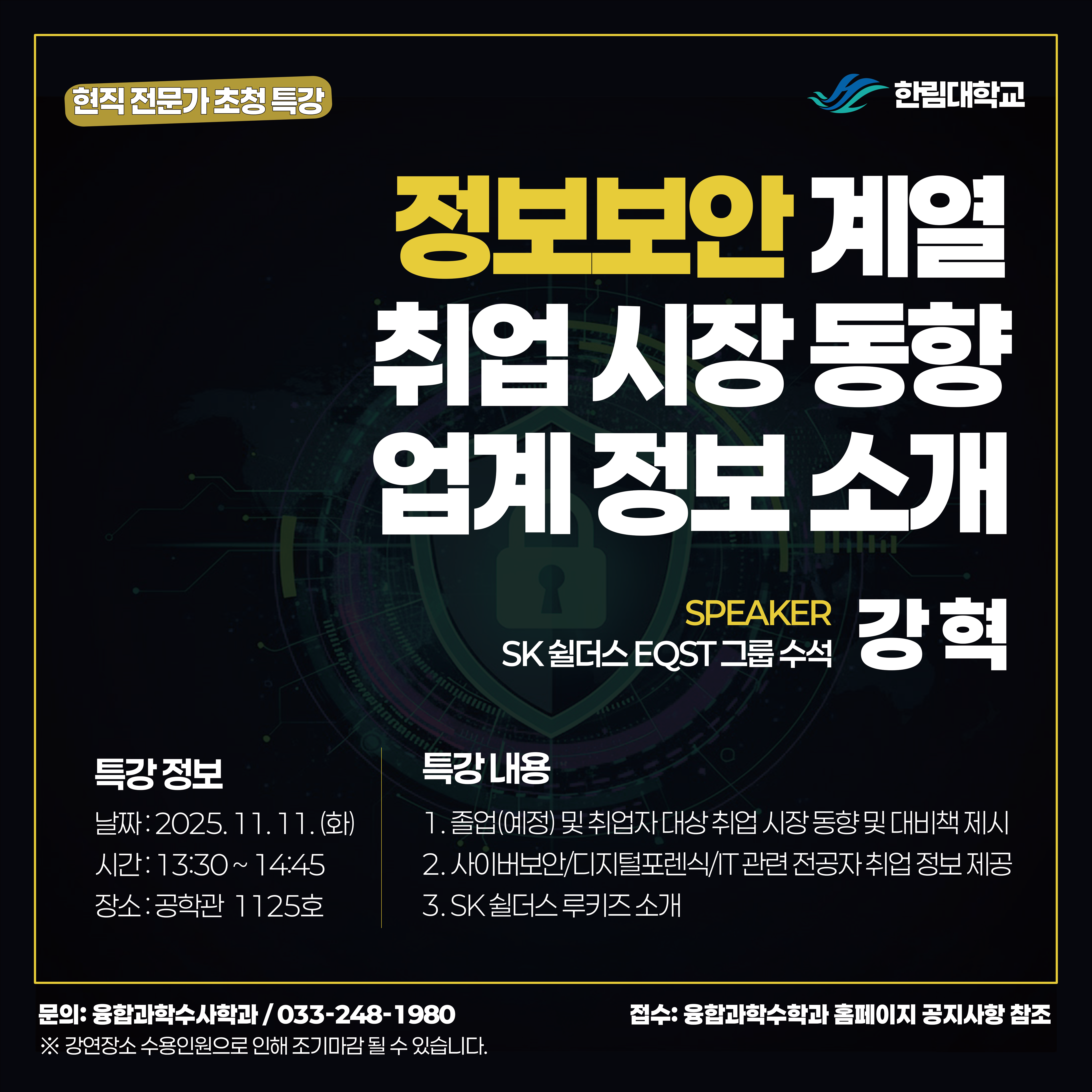 정보보안 전문가 초청 특강 관련 안내드립니다.