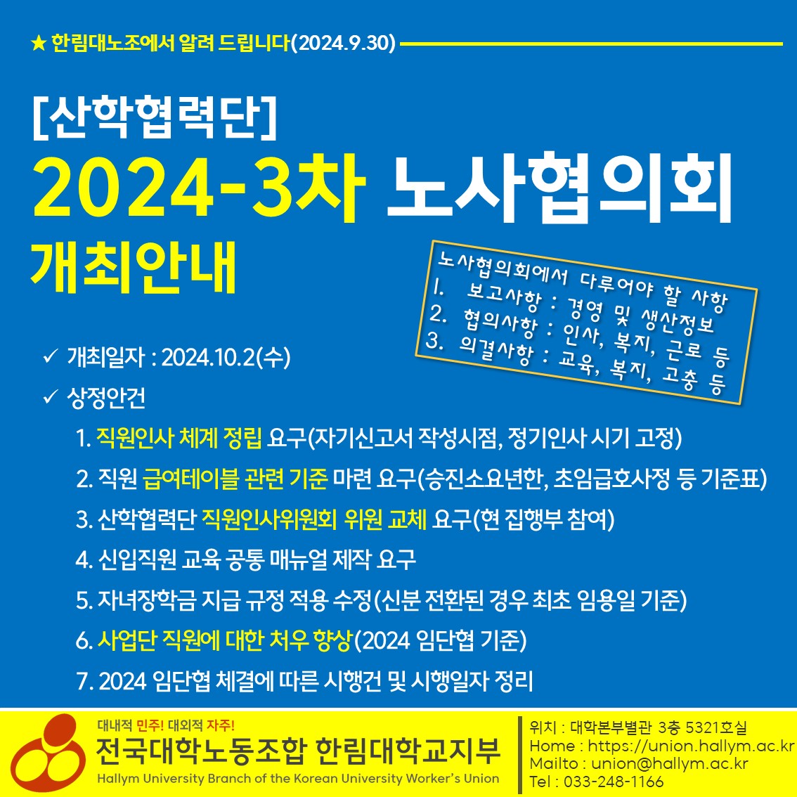 20240930 [산학협력단] 2024-3차 노사협의회 안내