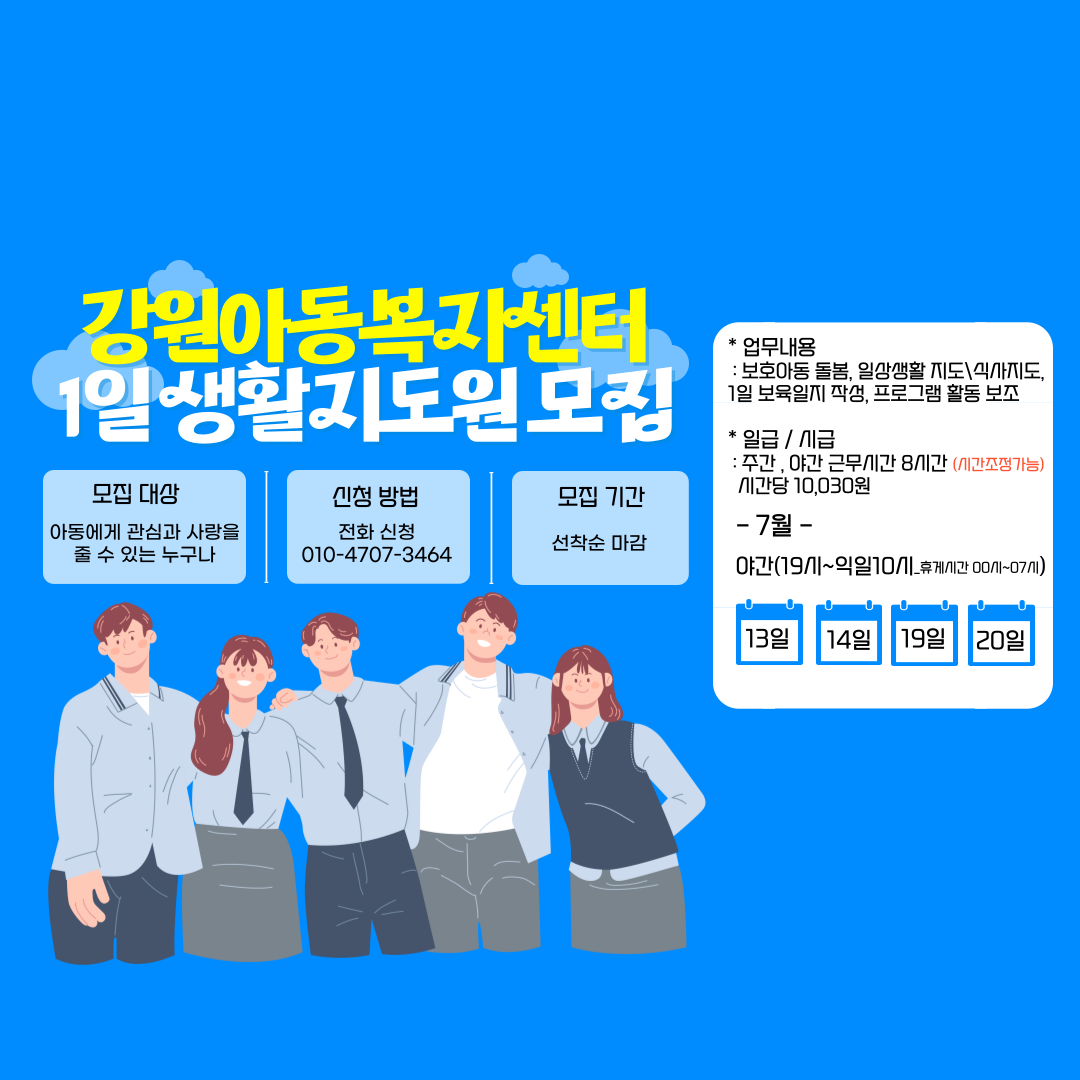 강원아동복지센터 7월 생활지도원 대체근무 안내